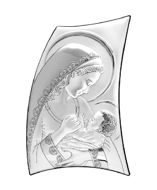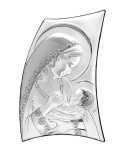 Icoană de perete, pe lemn alb cu folie de argint, Maria cu Pruncul.