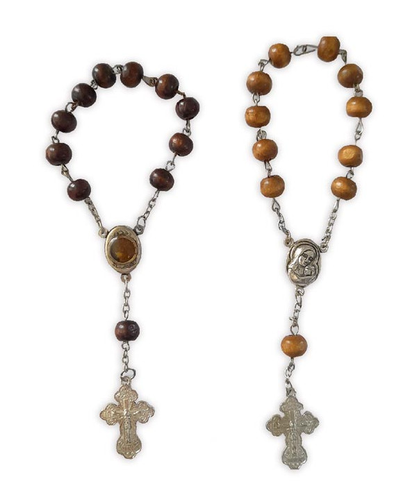 Decadă rozariu de lemn pe sârmă, cu pământ de la Ierusalim. Preț pe bucată.
