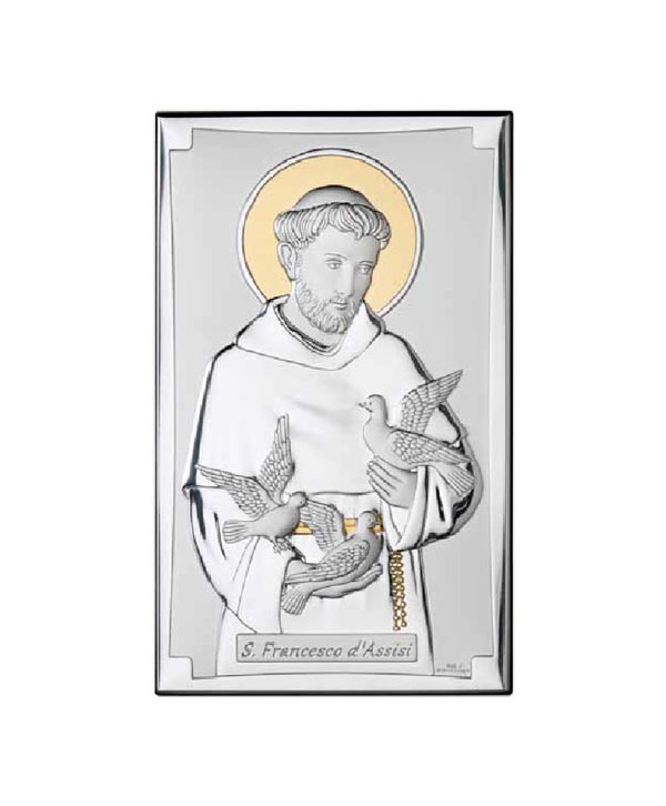 Icoană argintată Sf. Francisc de Assisi, de birou sau de perete.