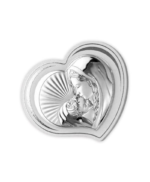 Icoană argintată Maria cu Pruncul, inimă