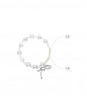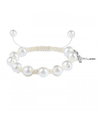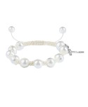 Brățară cu bile sidefate din sticlă, pe ață.