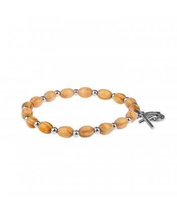 Decadă rozariu. Culoarea bobițelor este portocalie, cu inserții argintii.