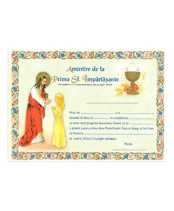 Amintire de la Prima Sfântă Împărtășanie pentru fete.