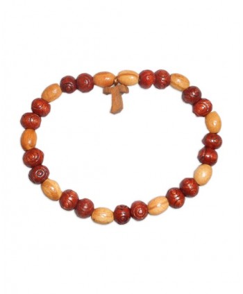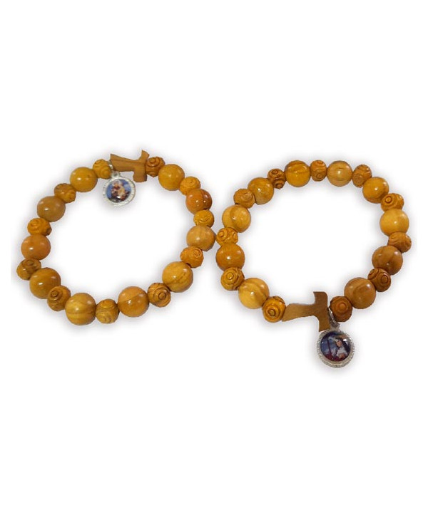 Brățară decadă de rozariu, lemn de măslin, medalia Sf. Benedict, ajustabilă.