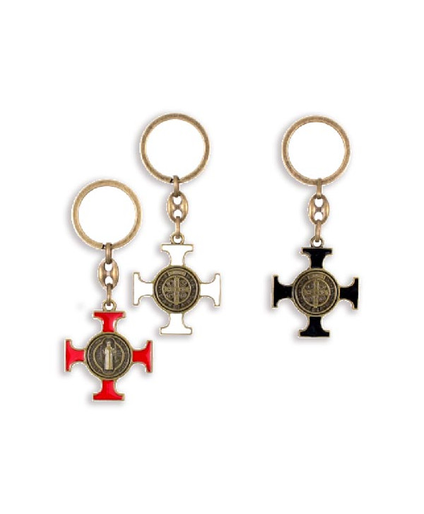 Cruce benedictină, breloc metal, diferite culori.