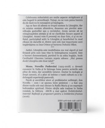 Celebrarea euharistică are multe aspecte atrăgătoare și este bogată în semnificații. Totuși, nu ne vom putea bucura de ele dacă nu le cunoaștem și nu le înțelegem. Așa se face că adesea suntem cu trupul la Liturghie, dar cu mintea suntem altundeva, deoarece am pierdut semnificația gesturilor sau a cuvintelor. Avem nevoie să ne reîmprospătăm atenția și să ne clarificăm fiecare aspect al Liturghiei. Atunci vom fi prezenți nu doar fizic, ci și cu sufletul, participând activ la Liturghie și beneficiind în mod eficace de darurile ei, dintre care cele mai importante sunt împărtășirea cu Isus Cristos și lucrarea Duhului Sfânt.