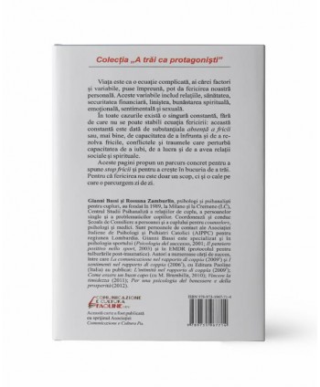 Aceste pagini propun un parcurs concret pentru a spune stop fricii și pentru a crește în bucuria de a trăi. Pentru că fericirea nu este doar un scop, ci și o cale pe care o parcurgem zi de zi.