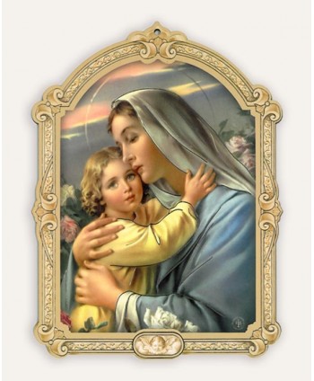 Icoană pe lemn alb cu folie de argint, Maria cu Pruncul, de birou sau de perete.
