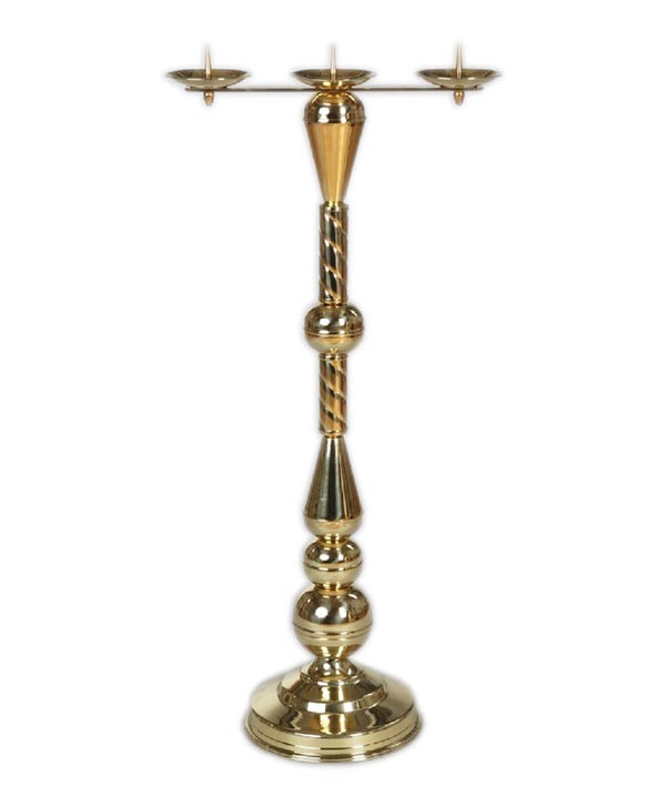 Sfeșnic Pascal realizat din alamă. Înălțime bază 98 cm, lățimea bazei 25.5 cm