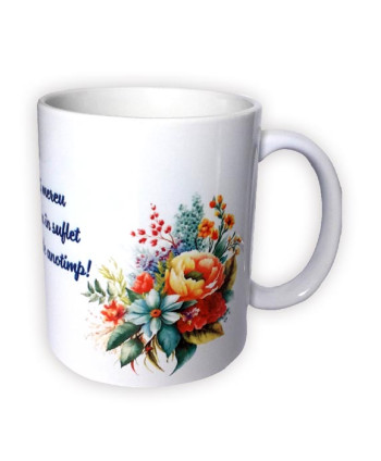 Un cadou excepțional dedicat celei mai importante persoane din viața noastră, mamei. Fie că se apropie ziua sa de naștere sau vrei doar să o faci să se simtă specială, cana personalizată este cadoul perfect. Regăsim un mesaj emoționant, alături de un desen ce reprezintă iubirea dintre mamă și copil.