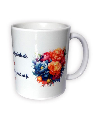 Un cadou excepțional dedicat celei mai importante persoane din viața noastră, mamei. Fie că se apropie ziua sa de naștere sau vrei doar să o faci să se simtă specială, cana personalizată este cadoul perfect. Regăsim un mesaj emoționant, alături de un desen ce reprezintă iubirea dintre mamă și copil.