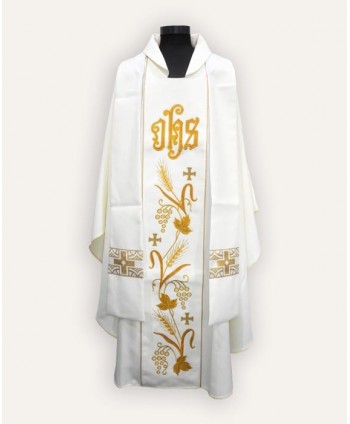 Ornatul este realizat din țesătură de înaltă calitate, decorată cu broderie cu simbolul euharistic, realizată cu fire de aur și visiniu, care înfățișează Mielul lui Dumnezeu. În plus, marginile ornatului sunt finisate cu ornamente din satin, auriu, care se potrivesc perfect cu Mielul lui Dumnezeu brodat.
