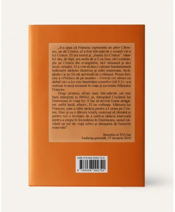 Considerăm că acest nou studiu despre Sfântul Francisc de Assisi este o apariție editorială inedită și importantă, ce aduce o lumină nouă asupra resorturilor interioare ale sărăcuțului din Assisi, resorturi care au stat la baza vieții sale de om și sfânt, și care au definit identitatea și conceptele Ordinului Franciscan.